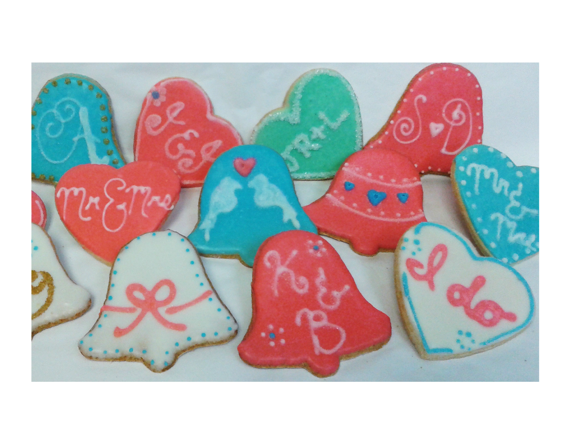Celebrate the happy couple with hand decorated wedding gluten free sugar cookies. Our wedding cookies are great for rehearsal dinners, wedding dessert tables, or gifts for your guests. Contact Cravings at 772-231-0208 for detailed information on personalization.