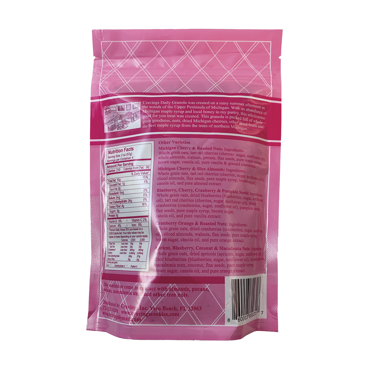 Made with whole grain oats, tart Michigan cherries, pure maple syrup straight from northern Michigan, flax seeds, and sliced almonds.